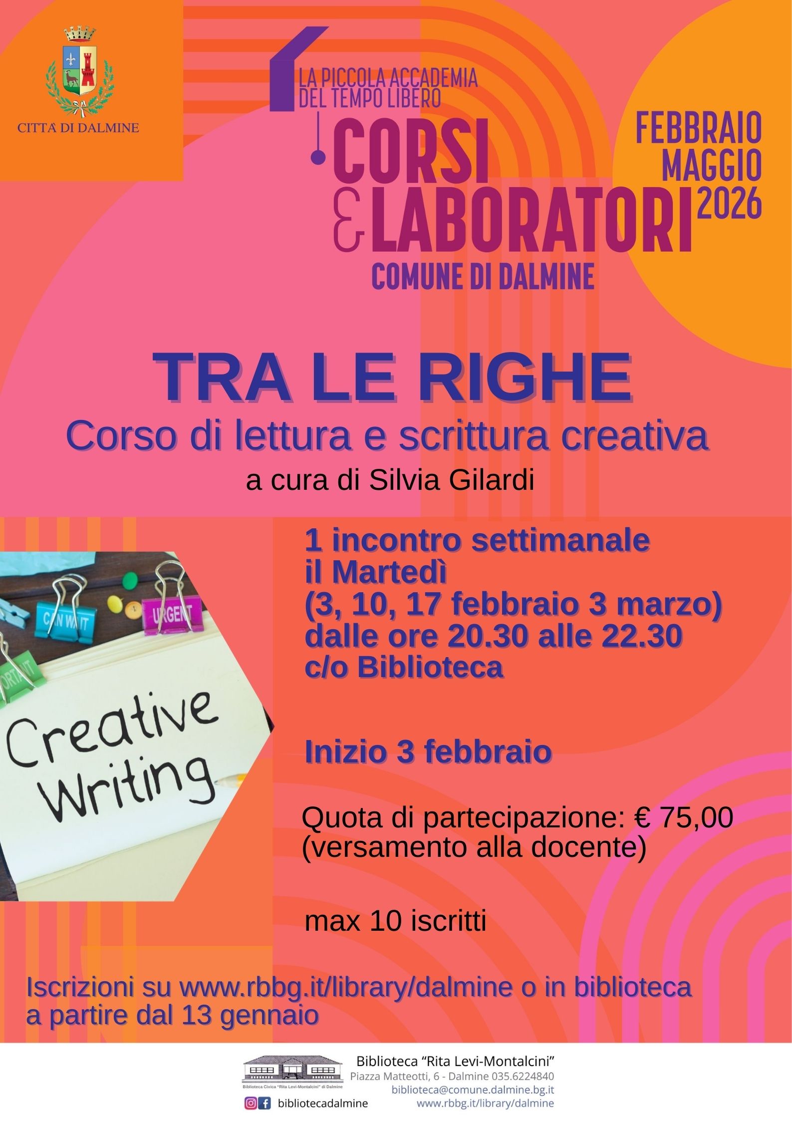 Iscrizioni QUI (a partire dal 13 gennaio)